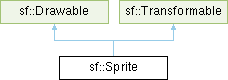 It inherits all the functions from sf::Transformable: position, rotation, scale, origin. It also adds sprite-specific properties such as the texture to use, the part of it to display, and some convenience functions to change the overall color of the sprite, or to get its bounding rectangle.